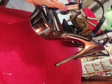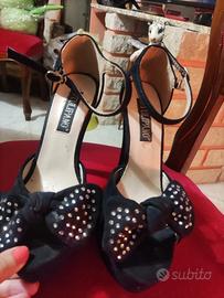 Sandali zeppe fiorate n36,,sandali tacco a spillo nere con fiocco davanti n37, sandali nero e argento n38