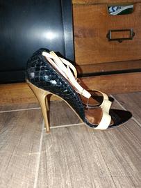 sandali pitonati neri numero 39 tacco oro cinturino panna