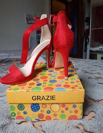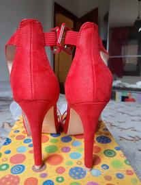 Pari al nuovo. Indossate una volta. Rosse scamosciate. Tacco perfetto e anche il sandalo come si vede dalle foto.