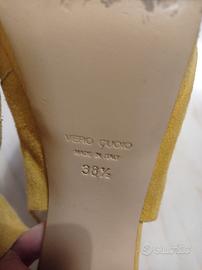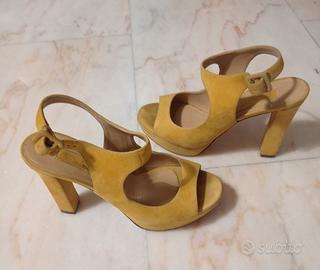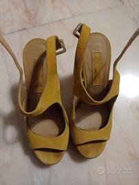 Sandali giallo senape scamosciati con plateau e tacco doppio che li fanno risultare comodi numero 38 e mezzo indossati pochissime volte Altezza tacco 12cm