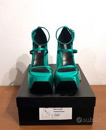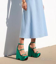 Sandali, tacco a zeppa, raso, verde, Versace, 39,5