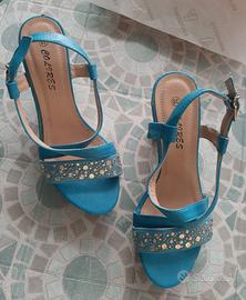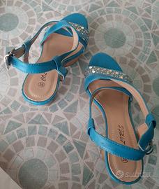 Bellissimi sandali Coltres, colore blu con dettagli oro. Sono taglia 38 e hanno un comodo tacco in sughero. Sono in condizioni accettabili!