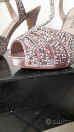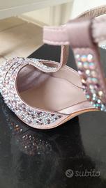 Li vendo per inutilizzo. Sarebbero state la mia seconda opzione come scarpe da sposa, ma ne avevo preso un paio identico del colore esatto dell'abito. Sono inutilizzate, mai indossate, si può notare dalle foto. Suola in vero cuoio, sandalo ricoperto di strass e rivestito in raso. Colore particolarissimo glicine rosè. Scarpe SUPER COMODE grazie al plateau e suola interna morbidissima.