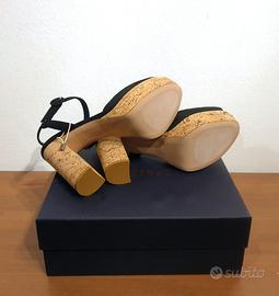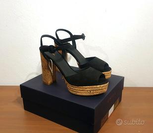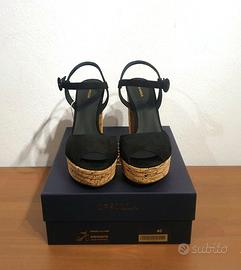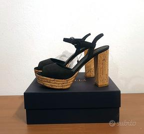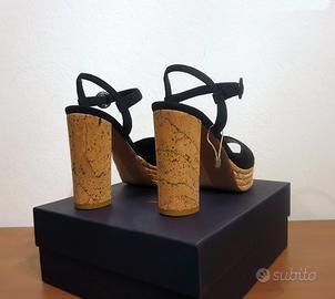 Bellissimi sandali con tacco e plateau in sughero, cinturino alla caviglia, by Le Silla Tomaia 100% in pelle scamosciata colore nero n.40 Prezzo retail €347,00 100% Made in Italy! PRODOTTO IN ITALIA Prodotto di provenienza italiana, sinonimo di qualità e creatività. COMPOSIZIONE Pelle MISURE Altezza tacco 11 cm Altezza del plateau 3 cm DETTAGLI Sandali Tinta unita Effetto scamosciato, Interno in pelle, Suola in cuoio Punta tonda Tacco geometrico Senza Applicazioni