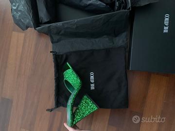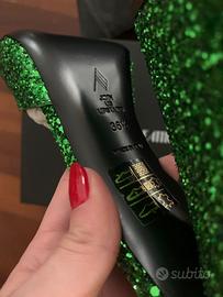 Sandali/ciabatta in pelle glitter colore verde..fondo in cuoio..n.36,5..(calza fino a 37)...Nuovi!!!!