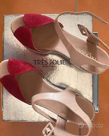 Vendo sandali Tres Jolie , n. 38 , in camoscio barolo e nappa . Usato 2 volte contate. Come nuovo.