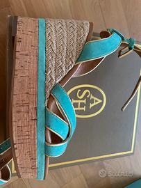 Sandali turchese con zeppa in sughero , n 38 , come nuovi , usati pochissimo