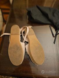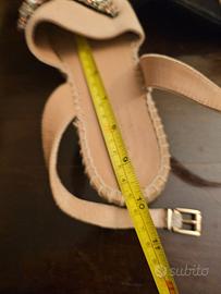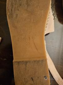 Sandali Twinset in nabuk rosa chiaro e suola in gomma resistente, impreziositi da una splendida farfalla gioiello ricamata a mano. Un modello ricercato, romantico e super femminile, ideale per chi ama distinguersi con eleganza durante la primavera e l’estate. Cinturino regolabile alla caviglia per una calzata più sicura e slanciata. Made in Spain, simbolo di qualità artigianale. In ottime condizioni: usati poco e mantenuti con cura. La suola presenta normali segni d’uso, ma la parte superiore è impeccabile. Taglia 39 (lunghezza soletta interna: circa 26 cm). Incluso sacchetto originale Twinset. Un’occasione per portarti a casa un modello luminoso, particolare e intramontabile. Consegna a mano in zona oppure spedizione tracciata disponibile #gucci #miumiu #twinset