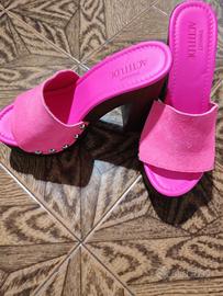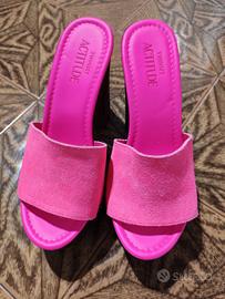 Sandali collezione Actitude in pelle fluo, con borchie laterali, plateaux e fondo in tunit.