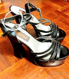Marca DEMONIA vegan. Utilizzati forse 4 volte. Piccole crepe dovute al tempo. Ancora molto belli ed eleganti. Anche se il tacco è alto, la calzatura risulta risulta comoda, poiché ha il plateau. Calzano 37 perfetto