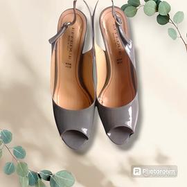 Sandali tacco 12 con plateau Effedue 39 Vernice grigia in vera pelle Complete di scatola Indossate in una sola occasione, ottime condizioni