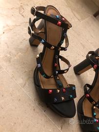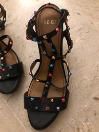 Bellissimi sandali con plateau e borchie colorate. Vero cuoio. Misura 40 Marca GREIGE