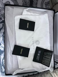 Vendo bellissimi sandali di Versace con il tacco alto da donna in taglia 37,5. Nuovi, ma mai utilizzati, ancora nella scatola originale con la cover protettiva ed il codice QR da scansionare per l’originalità del prodotto. Presente anche l’etichetta con il codice del prodotto.
