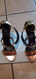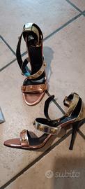 sandali eleganti Versace in pelle color bronzo dorato e nero usato solo 1 volta per un matrimonio. con scatola originale e sacco di stoffa