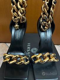 - Sandali in nappa con cinturino alla caviglia e fibbia Medusa