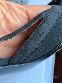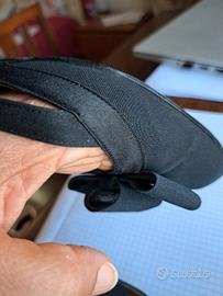 Scarpe originali Mario Valentino, modello vintage anni '60-'70, in tessuto nero gros grain con fiocco sul davanti e cinturino con fibbia.