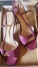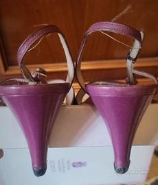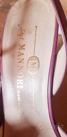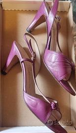 Sandali Vintage originale di vera pelle, indossati pochissimo, sopratacco nuovo, color viola ciclamino (stile Manolo Blahnik). Tacco 7 cm - Misura 37 ita - Marca Mannori (Made in Italy)