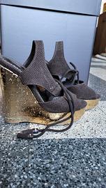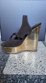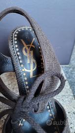 Sandali originali Yves Saint Lauren, semi nuovi, tessuto, con zeppa. Originali