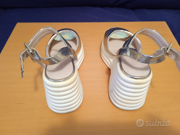 Un paio di sandali color oro con zeppa cm 10 marca Zara trafaluc. Usate in buono stato misura 36