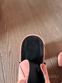 Sandali Zara originali, colore rosa, in eco-camoscio. Modello con tacco largo e plateau, cinturino alla caviglia regolabile. Comodi e stabili, ideali per primavera/estate. In buone/ottime condizioni (normali segni di utilizzo). Perfetti per look casual o eleganti.