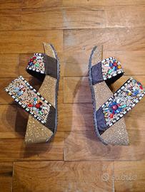SANDALI ZEPPA CAFFE' ITALIANO DONNA 36 CON STRASS