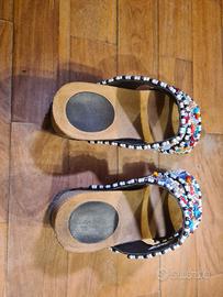 SANDALI ZEPPA CAFFE' ITALIANO DONNA 36 CON STRASS E PERLINE NUOVE NUOVE NON INDOSSATE