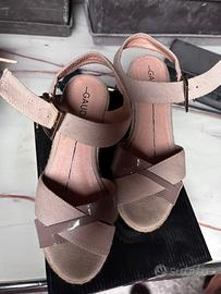 Vendo sandali da donna GAUDĂŚ, modello elegante e comodo con zeppa intrecciata e cinturino alla caviglia.