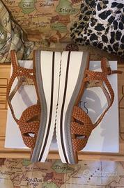 Sandali da donna in pelle con plateau del brand Lora Ferres; nuove (mai indossate) con confezione originale; numero 40; altezza zeppa-6cm; altezza plateau-3cm;