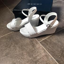 Sandali con zeppa in vera pelle. Colore bianco ghiaccio. Marca originale KAMMI made in Italy. Nuovissimi. Usati una volta. Perfetti. Scarpe taglia 40
