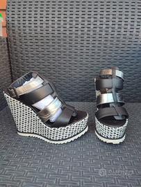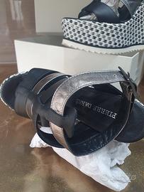 Sandali con zeppa PIERRE DARRÈ Vitello Nappa laminato N 37 tacco 13cm. plateau 4,5cm Mai usate confezione integra
