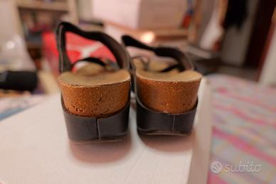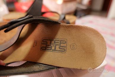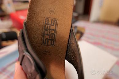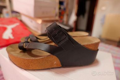 Vendo sandali infradito con zeppa media (circa 4-5 cm), ideali per chi cerca una scarpa estiva che unisca stile e massimo comfort. - Design: Modello infradito con cinturini incrociati e fibbia regolabile in metallo per una calzata perfetta. - Materiali: Tomaia in pelle nera di alta qualità e caratteristico fondo in sughero con plantare anatomico che si adatta alla forma del piede. - Stile: Look minimal ed versatile, perfetto per passeggiate in città o per il mare. Molto simili ai modelli iconici di Birkenstock o Grünland. - Condizioni: Ottime/Buone - Taglia 40. - Marca Step by Step. - Plantare in vera pelle.