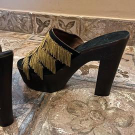 Dettagli dei sandali dorati; tacco 12 americano