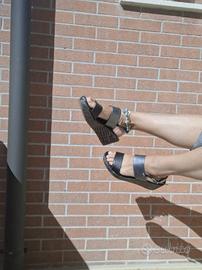 sandalo 41 donna zeppa scarpe nero fascia pianta