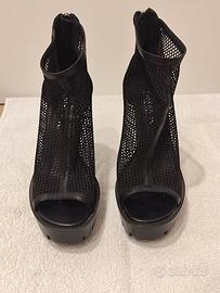 Si vende sandalo a rete tacco alto con plateau di colore nero, Made in Italy. Rifiniture in vera pelle e suola in gomma. Nuovi.