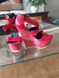 Sandalo rosso di SharleneCalzature .it made in italy taglia 37 altezza 14.5cm plateau 5cm
