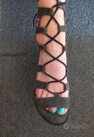 Sandali alla schiava bassi con lacci intrecciati colore grigio numero 38 usato in buonissimo stato.