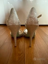 Sandalo argento brillantinato – tacco 11 cm, nuovo, taglia 40