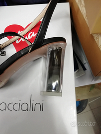 Sandalo Braccialini tacco 80, alcantara nera morbido, accessorio raso nero, numeri 40