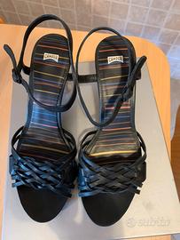 Vendo Sandalo Camper in vera pelle color blu scuro, provvisto di cinturino ,tacco in gomma comodissimo cm8.Misura 39.No spedizione