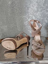Sandalo tacco 12 cm Tortora camoscio e tacco in pelle, mai usate. Numero 40
