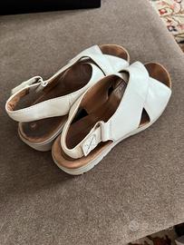 Sandalo color panna in pelle. Marca clarks. È stato usato, è in buone condizioni ma si vede che è stato usato. È molto comodo