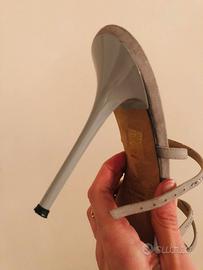 Composto da cinturino regolabile che si allaccia alla caviglia. Ideale per cerimonie. la scarpa è stata indossata solo poche ore per un matrimonio, perfette condizioni e buonissimo materiale Made in Italy come si può notare dalla suola. No Made in China. Acquistato a negozio a euro 88,00 scontato, rivendo a euro 30,00.
