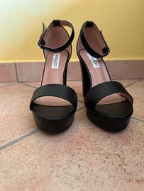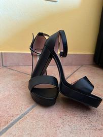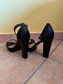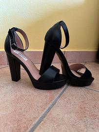 Sandali neri con tacco alto e cinturino, numero 39