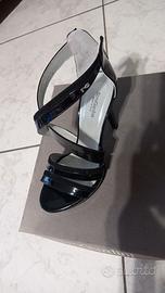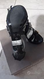 Sandalo con tacco 10 in pelle di capra scamosciata nero lucido. Taglia N. 36 mai indossati e con scatola originale.