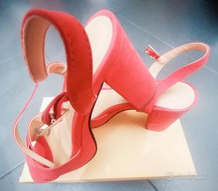 Sandalo Contigo con plateau e tacco largo. Chiusura con fibbia. Taglia: 38 Colore: arancio salmone Tessuto: camoscio Nuovo (mai indossato)