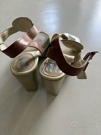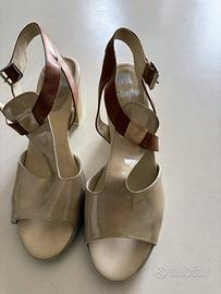 Sandalo da donna colore beige con tacco e plateaux, taglia 41 ottime condizioni. Calzato solo una volta praticamente nuovo.