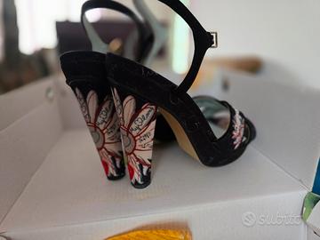 Sandalo nero a fiori desigual originale taglia 39, usato 2 volte, bello senza nessun segno d'usura