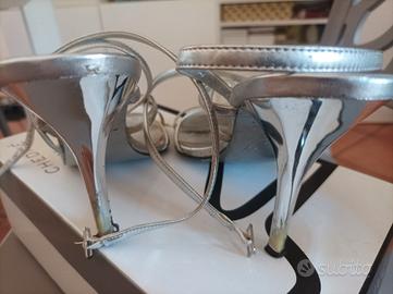 Scarpa sandalo donna n. 40 con tacco color argento semplice ma elegante un pochino rovinata sulla pianta dove appoggia avanpiede e tacchetto nella parte finale nonostante indossata pochissino