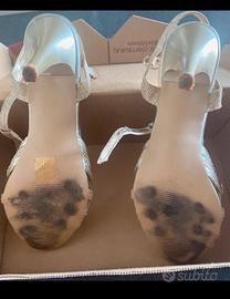 Sandalo donna con tacco, brand Camomilla. numero 39, colore dorato, tacco alto 9,5 cm , indossato una sola volta come si può vedere dalle foto.