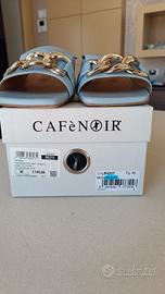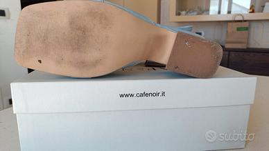 Sandalo donna colore celeste, numero 40, altezza tacco quasi 7 cm, indossato una sola volta per una cerimonia. praticamente nuovo, tacco integro, unico segno di usura è la suola sporca. prezzo del nuovo riportato sulla confezione originale.
